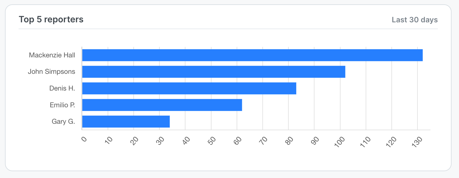 Get details analytics on who your best reporters are, how many issues have been reported and resolved, and more.