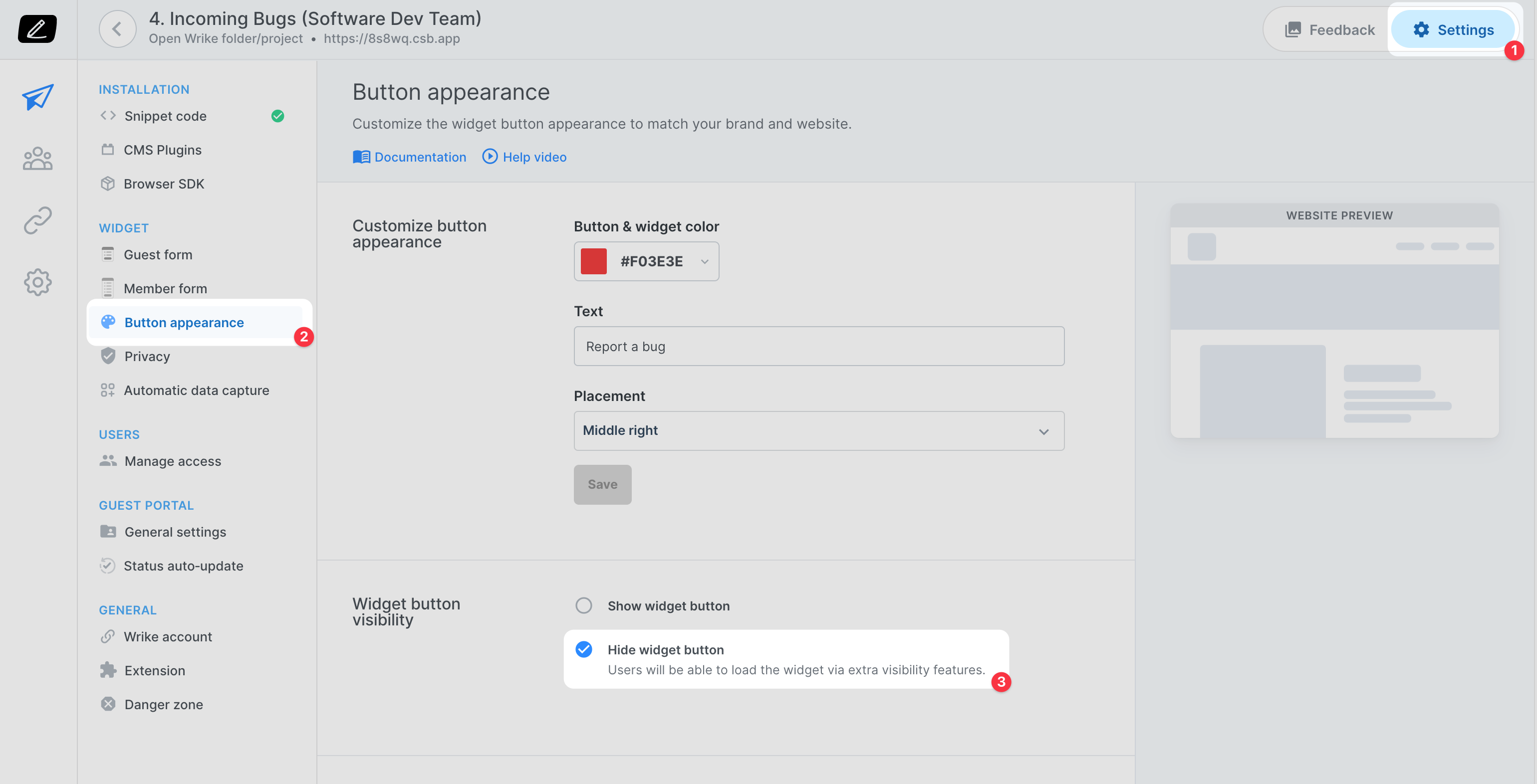 The next step is to implement our custom button. For example, at Marker.io, we chose to place a special option in our Help center popover to trigger our widget.