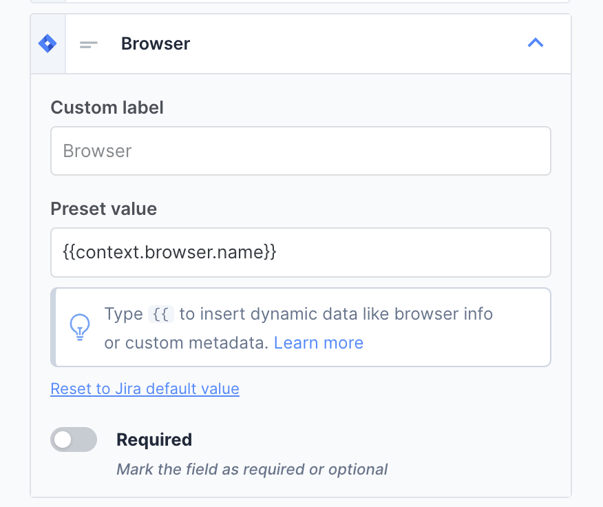 Map reporter data, browser info, and custom metadata directly to fields in your integrations. No more buried context in issue descriptions.