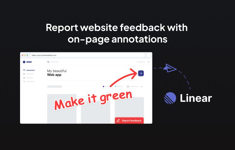 Bug reports and feedback will land in your Linear dashboard, making it easy to assign tasks, and clients can receive instant notifications when they’re marked as resolved.Â
