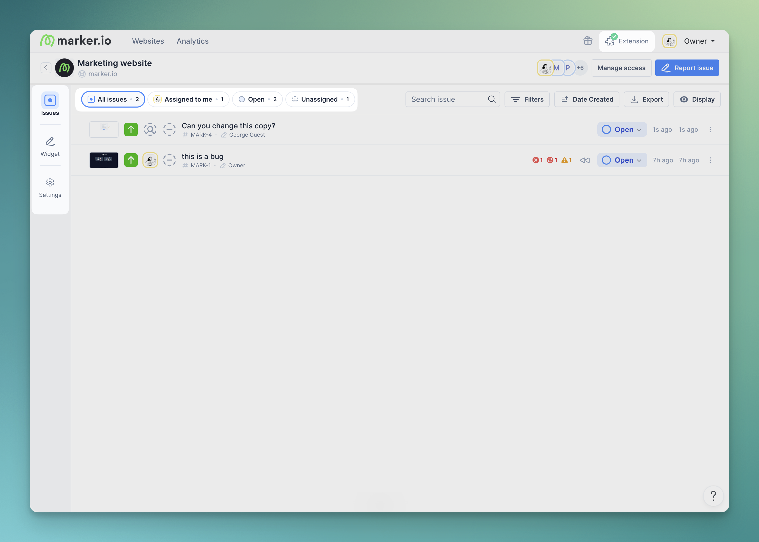 - Persistent views: Marker.io remembers which feedback view you last used per project.